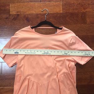 THE perfect dress when you’re stuck at home but still want to be cute. Generous and comfy fit, great back detailing and flattering coral color. Will be perfect we’ll into fall, just add a cute scarf!