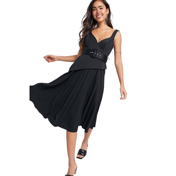 ASOS DESIGN pleated sleeveless midi dress with belt in black