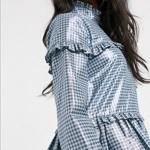 Ruffle tiered mini dress with metallic gingham print Stunning on!! Worn once!