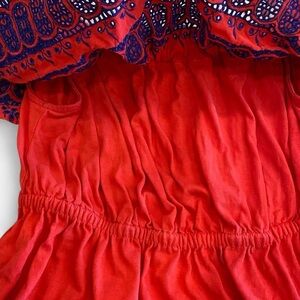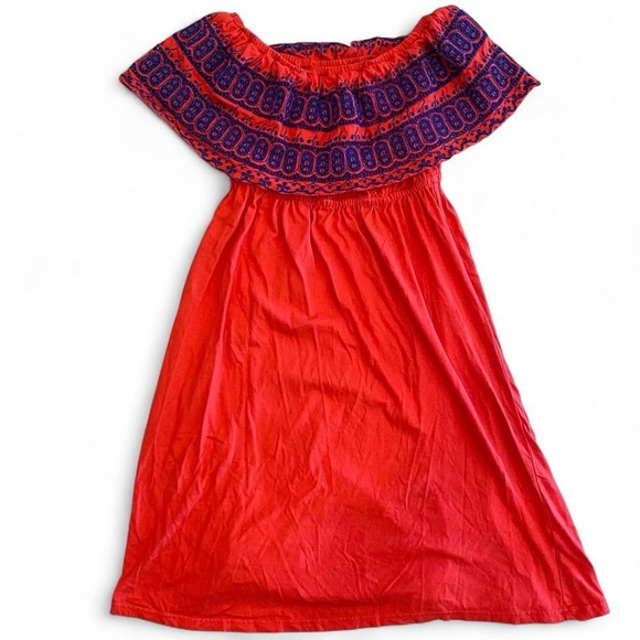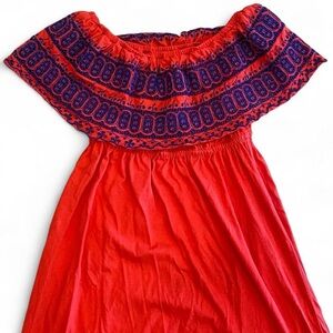 ASOS coral and navy blue off shoulder boho dress. Size 6.