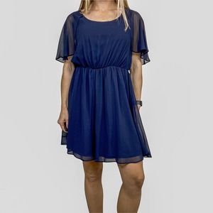 ASOS Dress Blue Fit and Flare with Flutter Sleeves Size 6