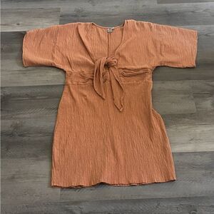 ASOS Dress Front Tie Seersucker Clay Earth Tone