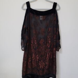 ASOS Dress Womens Large Velvet Burnout Floral Sheer Mini Black Brown