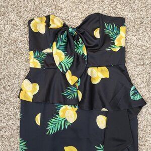 ASOS Dress Womens Size 12 Black Lemons Summer Side Slit Strapless Midi Frills
