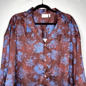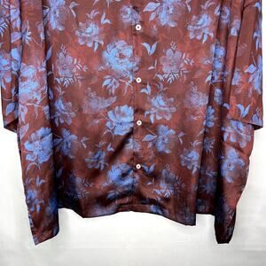 ASOS Dropped Shoulder Oversized Camp Collar Satin Shirt In Brown Floral 3XL