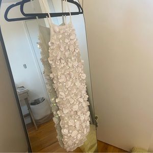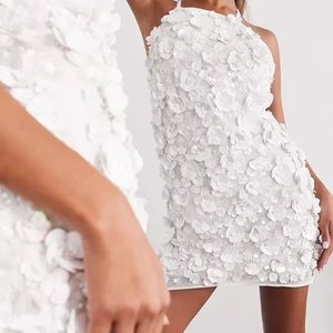 ASOS EDITION Backless Embellished Floral Mini Dress in size six. I wore this once for my wedding as my outfit change to dance in. I had a tight dress on all day and wanted something loose and comfortable but still chic. There is a stain on the inside of the dress, but not visible at all whatsoever from the front.