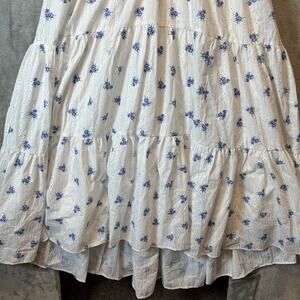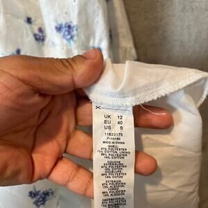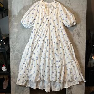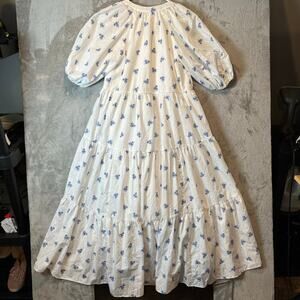 ASOS EDITION Puff Sleeve Midi Dress Ditsy Floral Embroidered White Blue Size 8