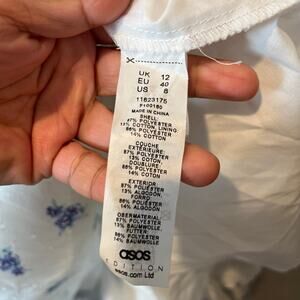 ASOS EDITION Puff Sleeve Midi Dress Ditsy Floral Embroidered White Blue Size 8 Wedding Guest