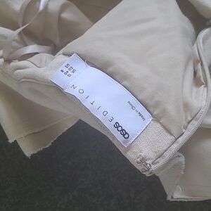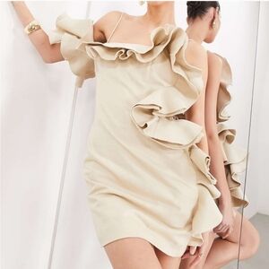 Chic Raw Edge Ruffle Dress by Asos Edition. The sculpted ruffles give this dress drama and flare. Beige. Size 8 EU 40. 100% Cotton. Made in China. This dress was worn twice indoors. In great condition.