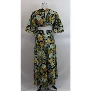 Women's dress by ASOS EDITION. Size 4. Appears to run a bit small, see measurements, might fit a 2 better. Mannequin is size 6, could not zip up completely at waist. Puff sleeve midi dress, black background with yellow and green floral print. Fabric - NWT new with tags. 100% cotton.