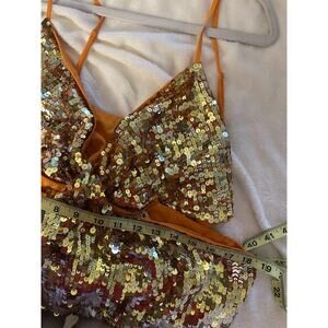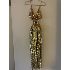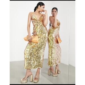 ASOS Edition Knot Front Sequin Disco Midi Dress Cut Outs in Orange Size 14 NWT