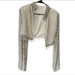 ASOS Edition Linear Fringe Pearl Embellished Crop Top With High Neck in White
