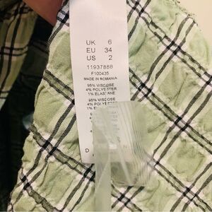 ASOS Edition Smock Top with Gathered Detail in green check plaid size 2