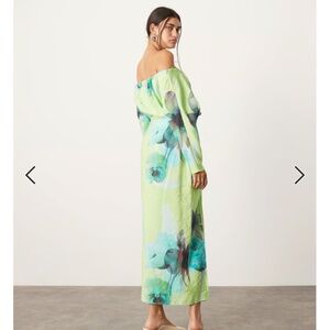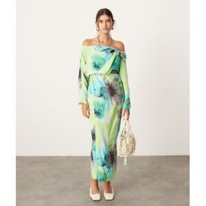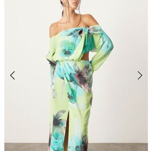ASOS EDITION twist off the shoulder maxi dress with cut out detail in large floral print