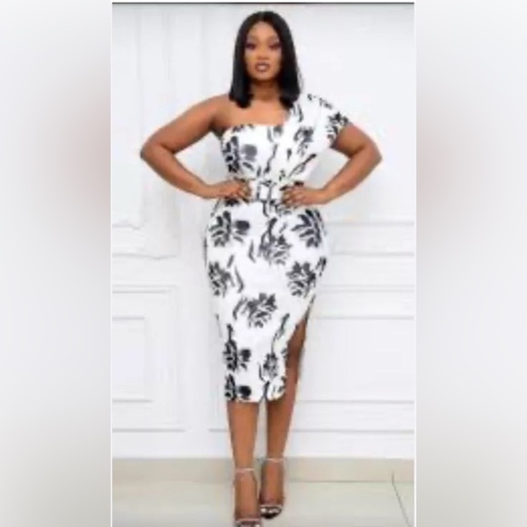 Step out in style with this elegant black and white floral one-shoulder dress. Perfect for any occasion, this dress combines sophistication with a modern twist. The bold floral pattern adds a touch of flair to your wardrobe.