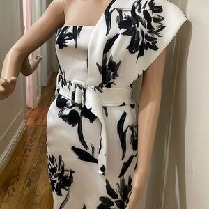 ASOS Elegant Black and White Floral One-Shoulder Dress