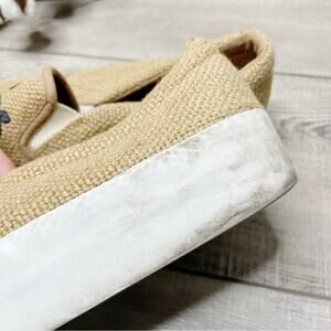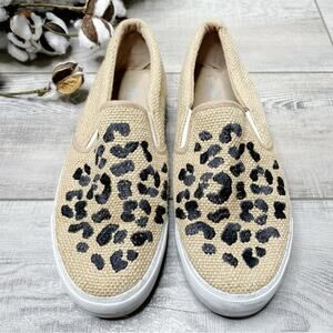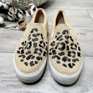 ASOS Embroidered Leopard Burlap Slip On Platform Sneakers Tan Black Size 9
