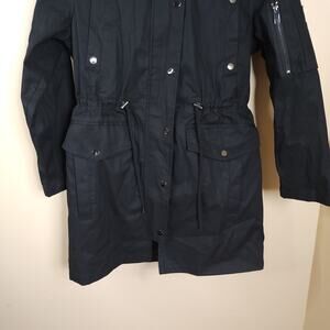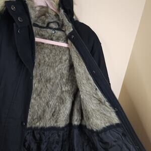 ASOS Faux Fur Hood Drawstring Parka Coat in Black Size 6