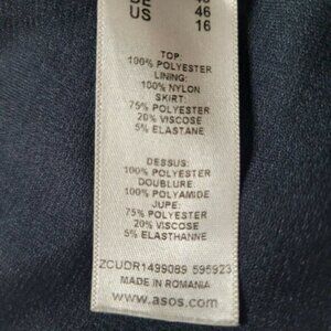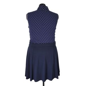ASOS Fit N Flare Dress Size 16 Navy White Polka Dot Attached Tie Sleeveless Zip