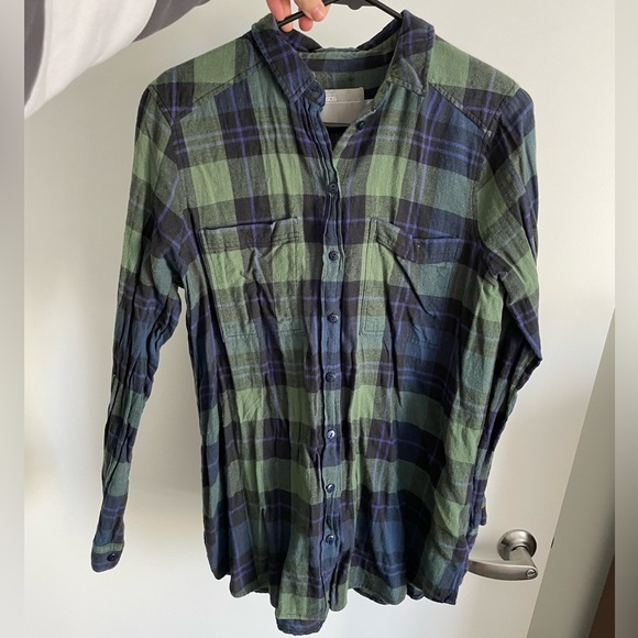 In good, used condition. Only noticeable pilling is on the back bottom side. This still has life left! Fits true to size for a 6. Lighter weight, thinner flannel.