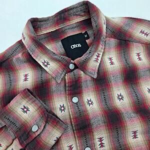 ASOS Flannel Southwestern Print Pearl Snap Button Up Size Men's M