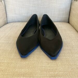 New without tags punted tow black satin flats with electric blue boarder around the bottom. Super versatile! Never worn!
