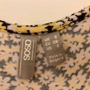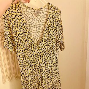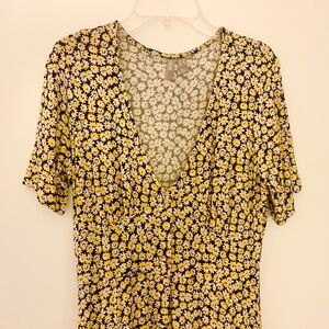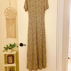 This lovely maxi dress features a v-neckline with decorative buttons and three knee-height slits for airiness and ease of movement. A vibrant floral pattern in black/yellow/white and the softest, most comfortable jersey feel fabric that fits your body so well! Only worn once and no longer available on their website! Size US 4. (96% Viscose/4% Elastane)