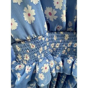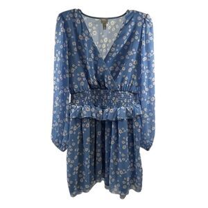 ASOS Light Blue Long Sleeve Floral Ruffled Peplum Mini Dress