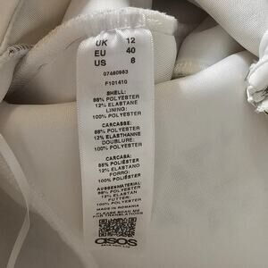 Features: Neoprene-like fabric, One-Shoulder, Ruffle Neckline and side accent, side zip closure.