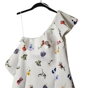 ASOS Floral One Shoulder Ruffle A-Line Mini Dress Size 8