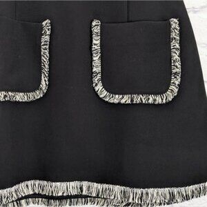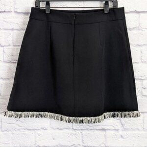 ASOS A-Line Mini Skirt with Fringe. Size US 10. Black with black and white fringe detailing. High waist. Large front pockets. Back zipper closure.