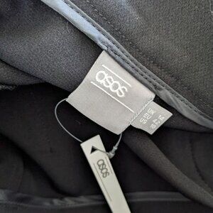 ASOS Fringe A-Line Mini Skirt 10 NEW Black White Pockets