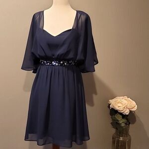 ASOS Fun & Flirty Navy Sheer Open Back Dress Size 4