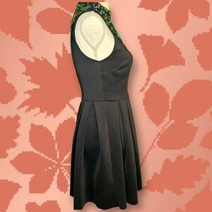 ASOS Gem Embellished High Neck A-Line Navy Blue Skater Dress Size 4