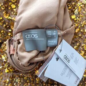 Stunning gold sequin midi dress. Features long sleeves and deep V-back. Perfect for evening events, weddings, galas, birthdays, a glam night out!