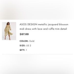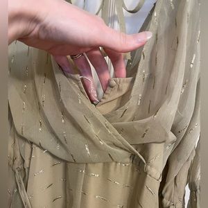 ASOS gold ruffle dress size 2. Defect - top button loop, pictured.
