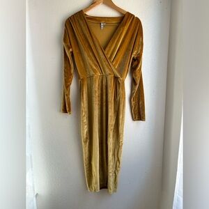 ASOS | Gold Velvet Long Sleeve Midi Dress