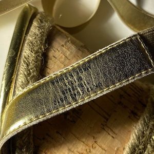 Beautiful flawless golden leather upper wedge heels. The straps wraps around your ankles