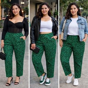 Chic emerald and black trousers with a unique texture. Ideal for stylish outings.