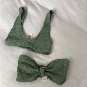 Dive into style with the ASOS Green Ribbed Bikini Set, featuring a chic bralette top with thin straps and a plunging V-neck design. Crafted from a trendy sage green ribbed fabric, this bikini offers a soft, textured feel perfect for a day at the beach or poolside lounging.