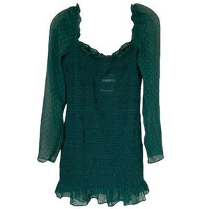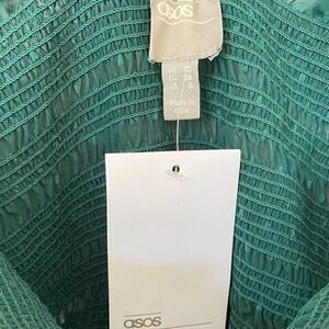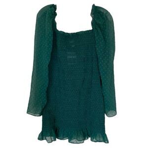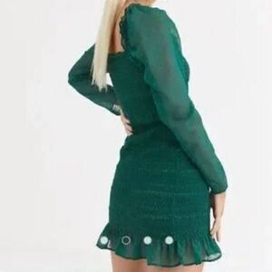ASOS Green Shirred Swiss Dot Ruffled Cocktail Party Mini Dress NWT Size 6 Small