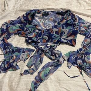 Super cute ASOS matching set with wrap tie style top and zippered skirt. Very unique. Would do well for a decades party or Halloween costume! Or even a swim coverup. SIZES MIX/MATCH