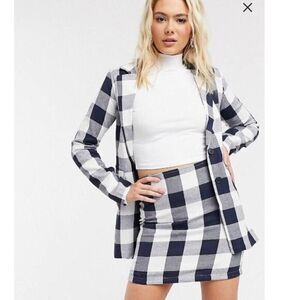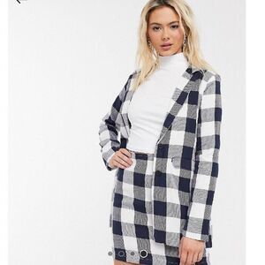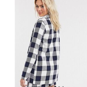 ASOS Heartbreak Navy blue and White Gingham Check longline blazer size 6