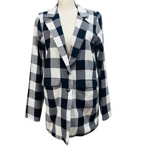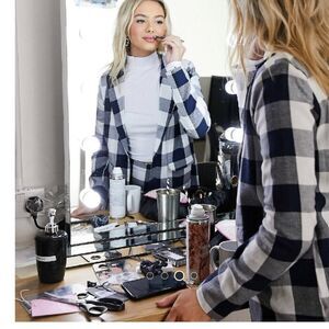ASOS Heartbreak Navy White Gingham Check longline blazer size 6