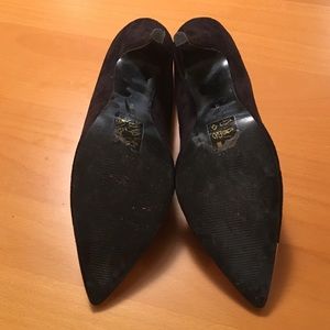 3inch heels. Features gold hardware at the toes. Good used condition. Minor scratches and small stain on the outside of the right heel. Other than that, these heels have a lot of life left!