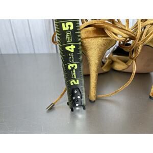 ASOS Heels Gold Yellow Velvet Stiletto Embellished Beaded Strappy Size 7