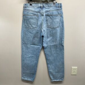 ASOS High Rise Button Fly Distressed Mom Jeans in size 30/32. Excellent preowned condition, like new. Traditional five pocket style, ripped knees, slightly tapered leg. Please see photos for approximate measurements and details. Item may show difference in color based upon photography and perception. Photos are part of the description, as everyone’s level of condition may vary. From smoke free and pet free home. All packages are shipped the same or next business day.