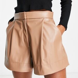 These ASOS high-waisted shorts in tan feature a smooth texture and a flattering silhouette. The wide waistband ensures a comfortable fit, while the flowy design adds a touch of elegance to your outfit.