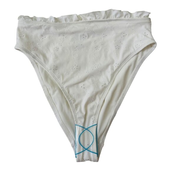 ASOS High Waist White Ruffle Embroideries Bikini Bottom Size UK 10 EU 38 US 6