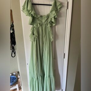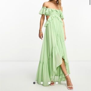 ASOS High-Low Ruffled Dress in Soft Green XLT